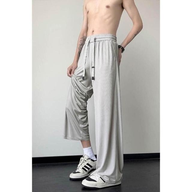 運動長褲男夏季薄款涼感男長褲抽繩簡約輕量運動褲通勤百搭寬褲大碼防水透氣速乾工作褲直筒闊腿休閒褲工裝褲寬鬆彈性彎刀褲西裝褲