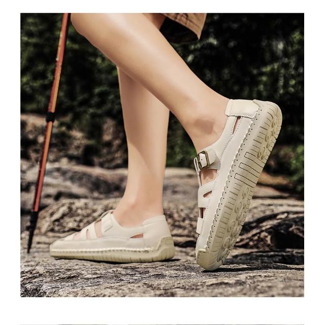 涼鞋女運動休閒鞋厚底增高足弓涼拖鞋戶外健走防臭防滑護趾護指防水真皮室外室內夾腳黑色白色懶人鞋夏季時尚舒適透氣浴室女士涼鞋