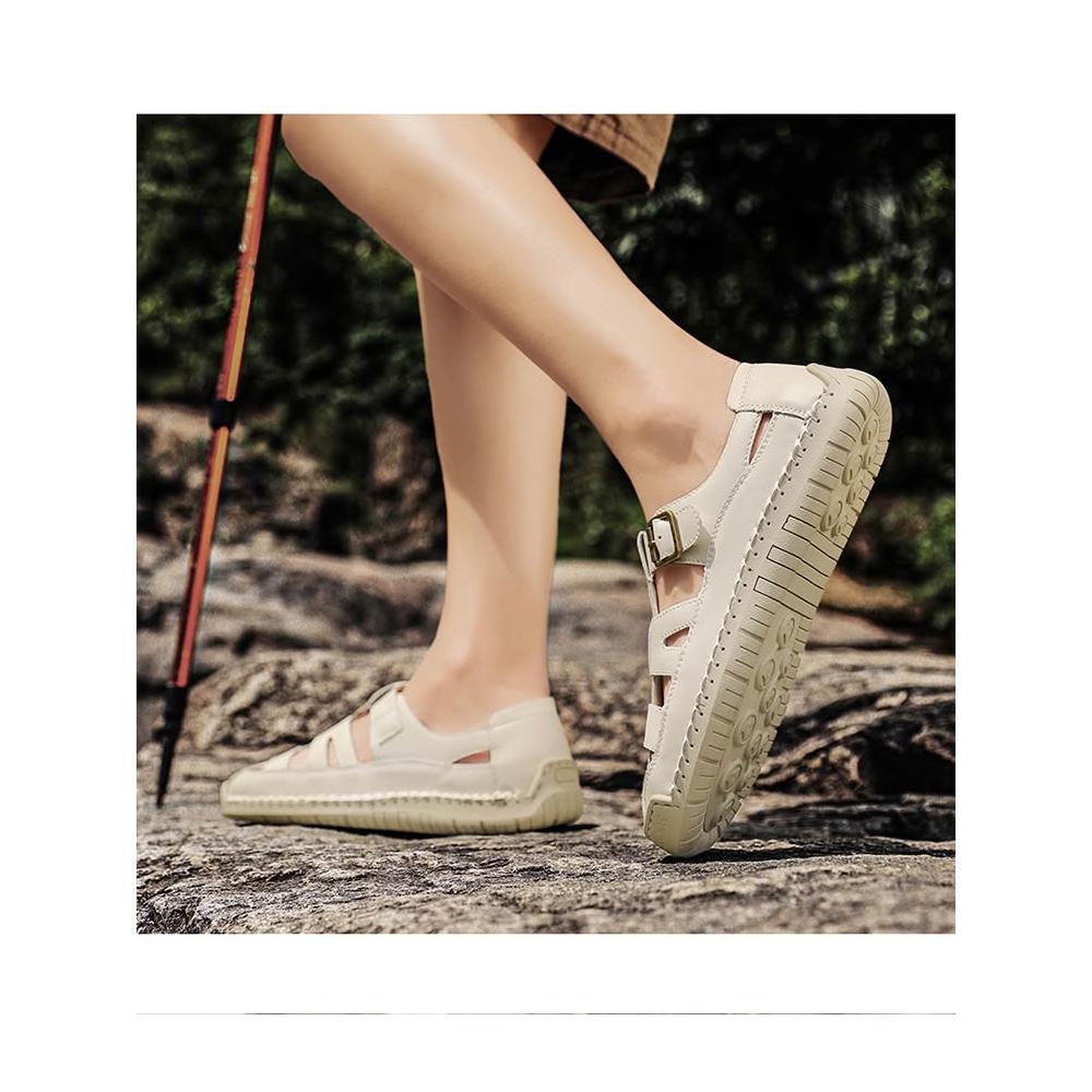 涼鞋女運動休閒鞋厚底增高足弓涼拖鞋戶外健走防臭防滑護趾護指防水真皮室外室內夾腳黑色白色懶人鞋夏季時尚舒適透氣浴室女士涼鞋