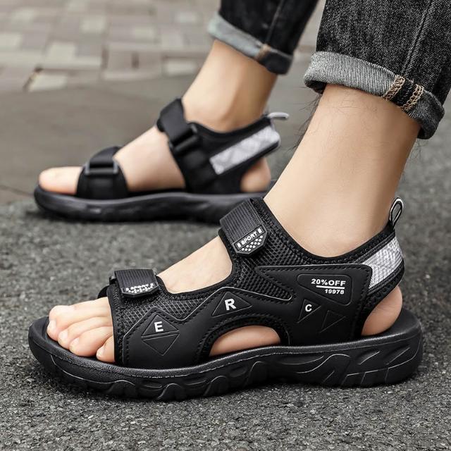 涼鞋男運動休閒鞋厚底增高足弓涼拖鞋戶外健走防臭防滑護趾護指防水真大尺碼皮室外室內夾腳黑色懶人鞋夏季時尚舒適透氣浴室男生涼 鞋