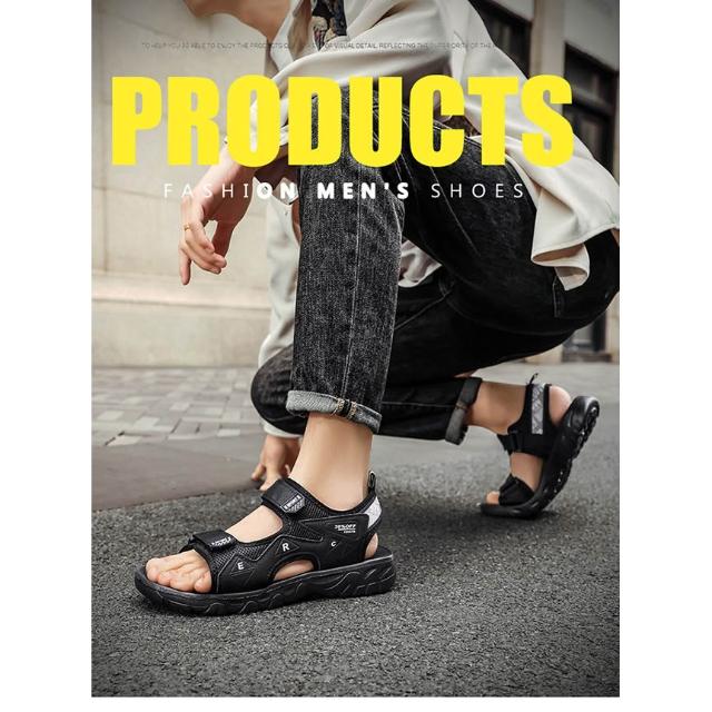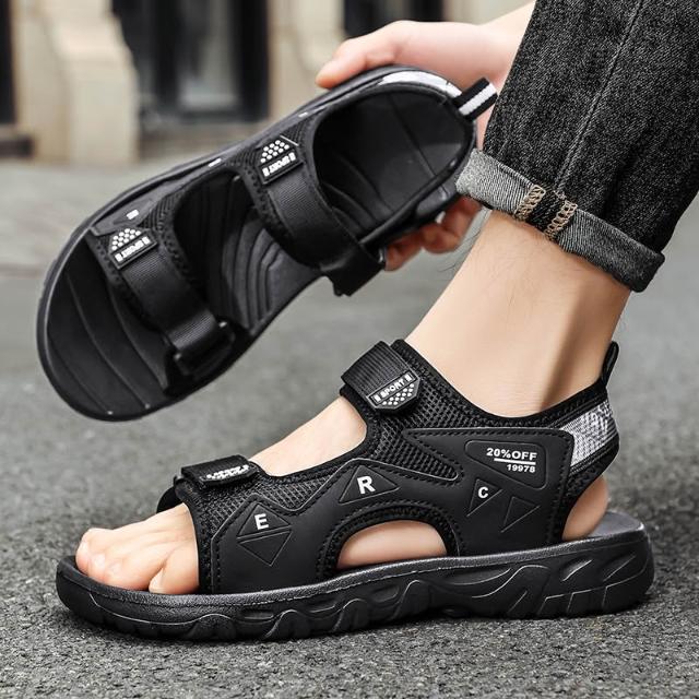 涼鞋男運動休閒鞋厚底增高足弓涼拖鞋戶外健走防臭防滑護趾護指防水真大尺碼皮室外室內夾腳黑色懶人鞋夏季時尚舒適透氣浴室男生涼 鞋