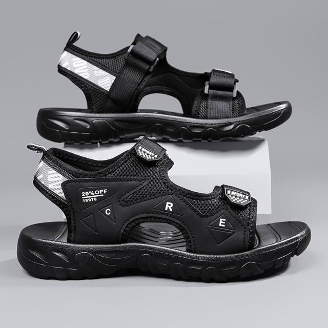 涼鞋男運動休閒鞋厚底增高足弓涼拖鞋戶外健走防臭防滑護趾護指防水真大尺碼皮室外室內夾腳黑色懶人鞋夏季時尚舒適透氣浴室男生涼 鞋