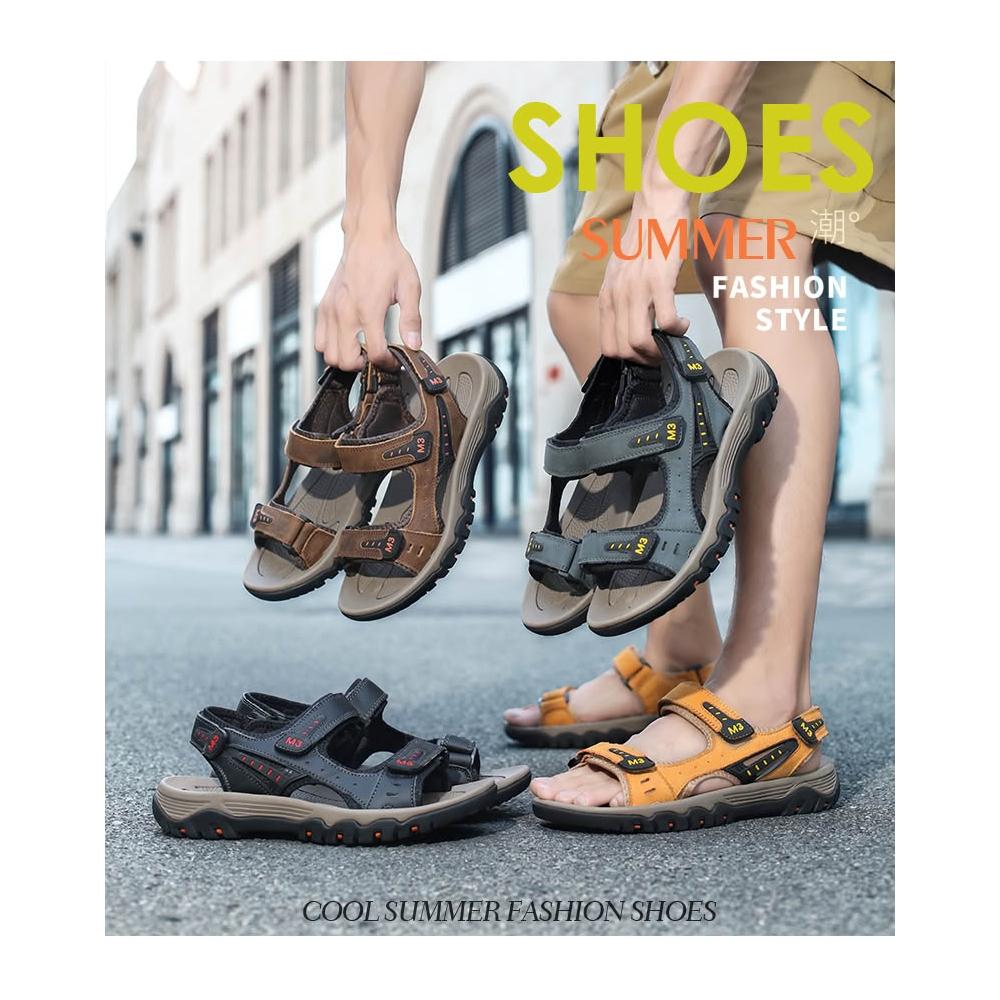涼鞋男運動休閒鞋厚底增高足弓涼拖鞋戶外健走大尺碼防臭防滑護趾護指防水真皮室外室內夾腳黑色懶人鞋夏季時尚舒適透氣浴室沙灘鞋