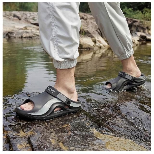 涼鞋男運動休閒鞋厚底增高足弓涼拖鞋戶外健走防臭防滑沙灘鞋護趾護指防水真皮室外室內夾腳黑色懶人鞋夏季時尚舒適透氣浴室男生涼 鞋