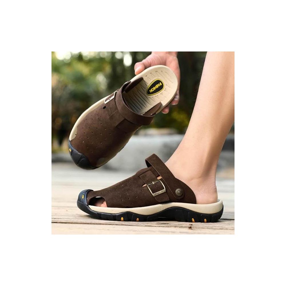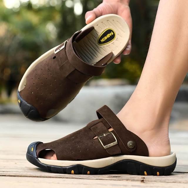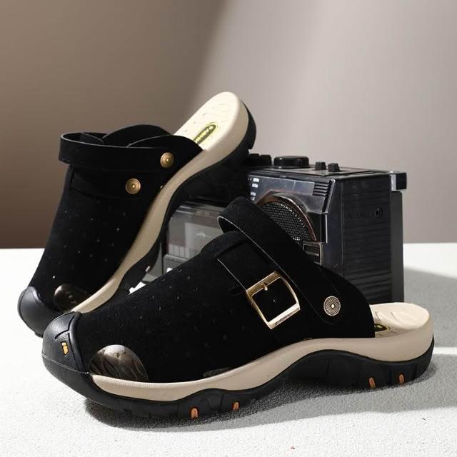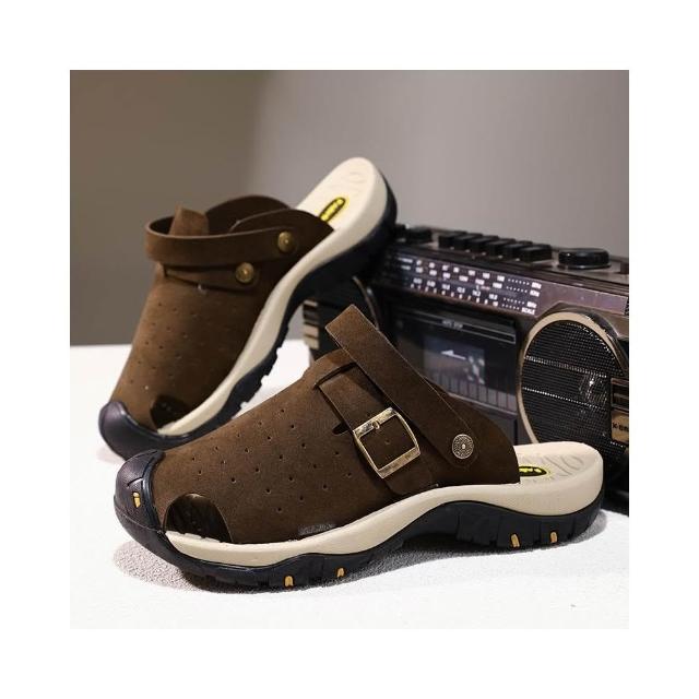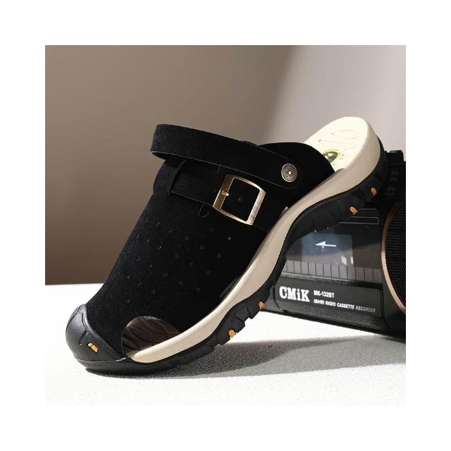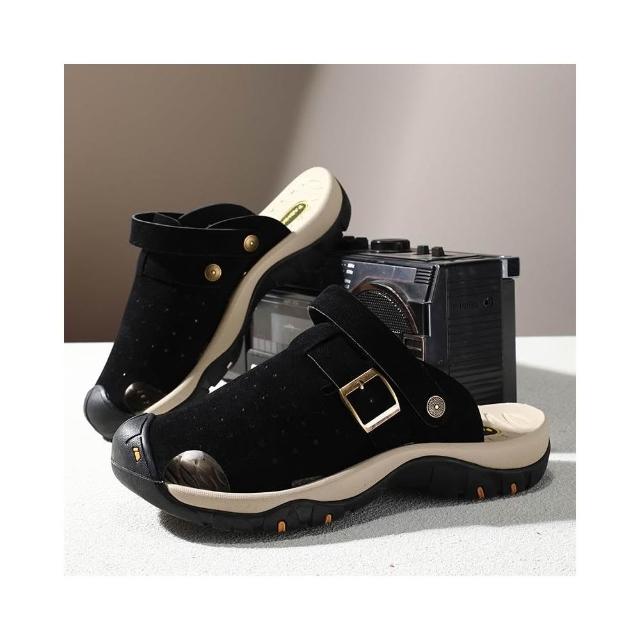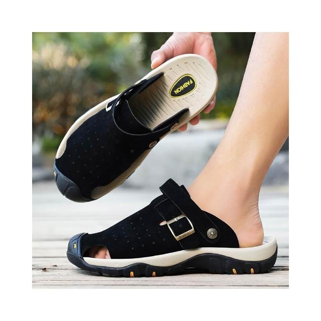 涼鞋男大尺碼運動休閒鞋厚底室外增高足弓涼拖鞋戶外健走防臭防滑夏季護趾護指防水真皮室內夾腳黑色時尚舒適透氣浴室懶人鞋沙灘鞋