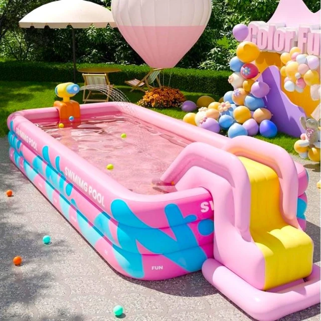 防側翻充氣溜滑梯-活力粉(水上泳池 遊戲池 游泳池 溜滑梯)