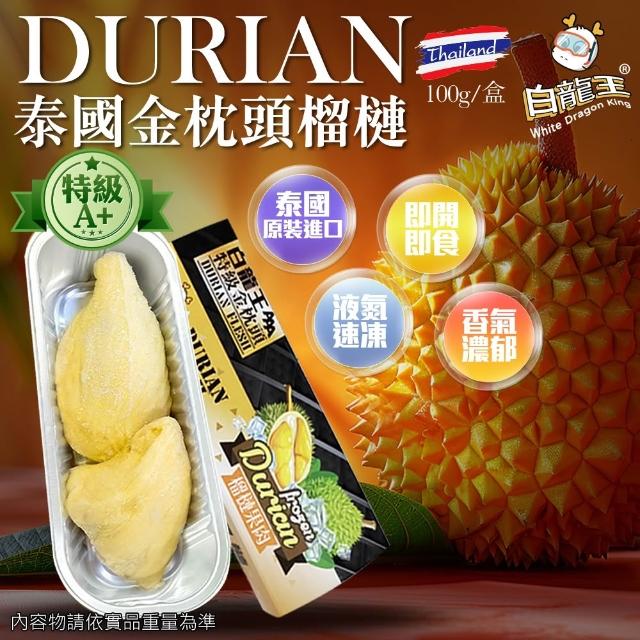 白龍王榴槤 無籽鮮凍 特級A+金枕頭榴槤(100克一盒)x10盒、果肉香甜、口感綿密(泰國 榴蓮 榴槤冰 金枕頭奶香味)