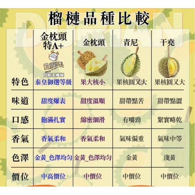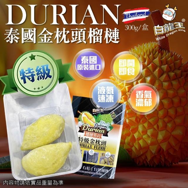 白龍王榴槤 無籽鮮凍 特級金枕頭榴槤(300克一盒)x4盒、果肉香甜、口感綿密(泰國 榴蓮 榴槤冰 金枕頭奶香味)