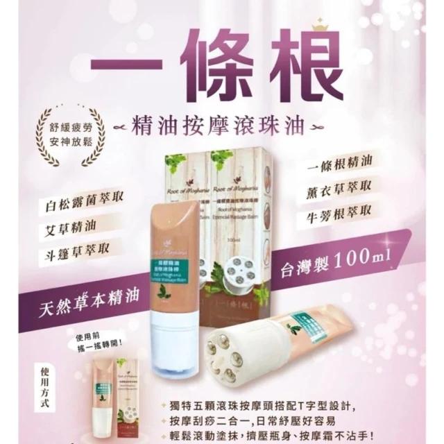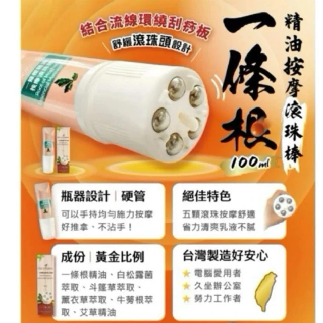 一條根精油按摩滾珠棒-5支/組 <5顆滾珠頭, 100ml大容量, 草本植物芳香, 清爽
