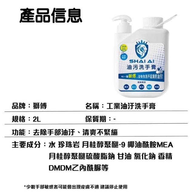 台灣現貨 獅傅工業洗手膏 黑手洗手膏 2000ml/瓶 工業用洗手膏 磨砂膏 去油污洗手膏 去油汙洗手 摩擦洗手膏