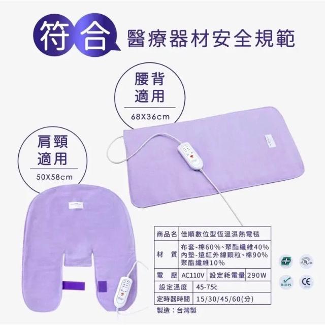 佳順數位型恆溫濕熱電毯 熱敷墊 台灣製 吉寶寶
