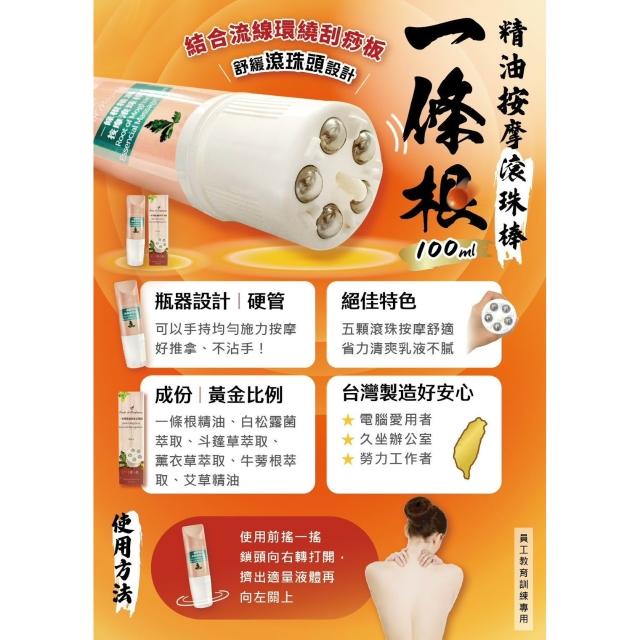 一條根精油按摩滾珠棒 5顆滾珠頭, 100ml大容量, 草本植物芳香, 清爽