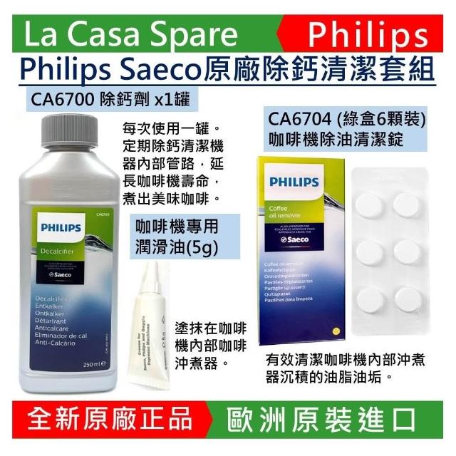 Philips 飛利浦咖啡機原廠專用清潔套組 CA6700除鈣劑/ CA6704咖啡油脂清潔錠/潤滑油 CA6903濾芯套組
