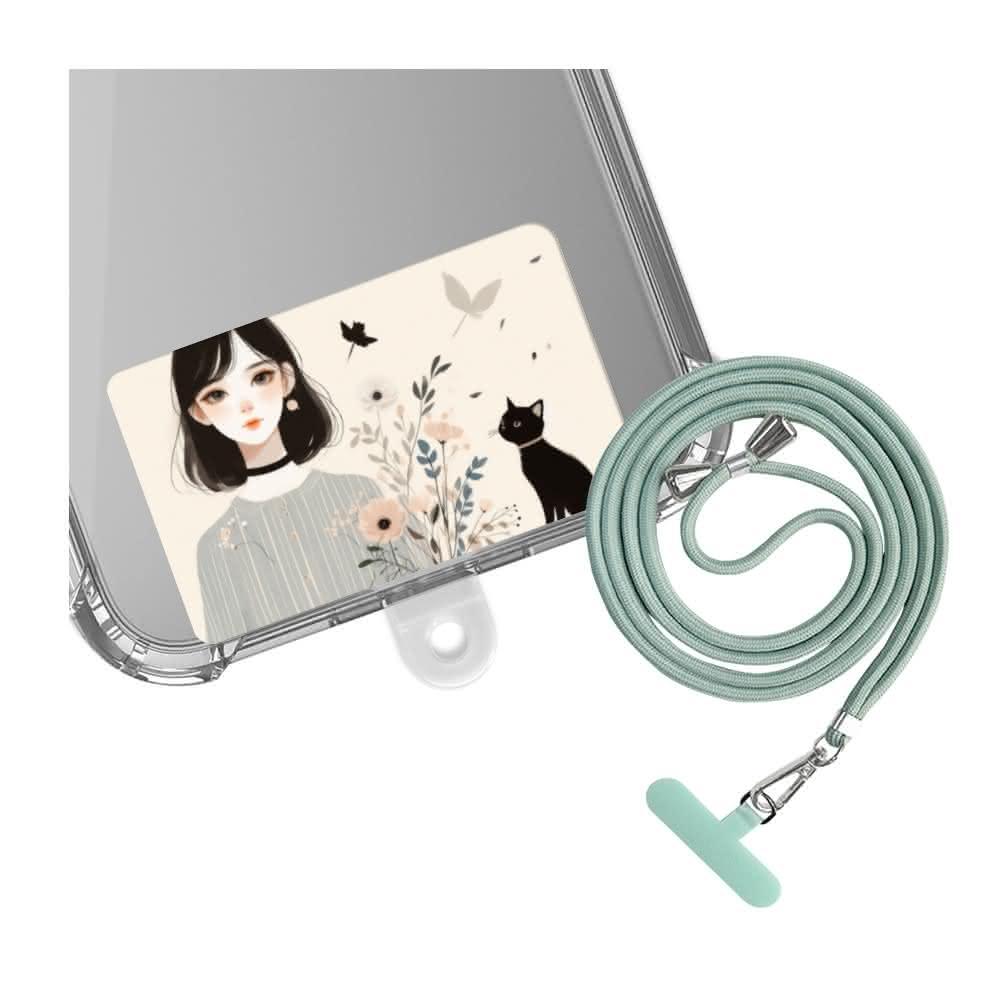 TRONTRON iPhone 16 黑髮女孩與黑貓 四角防摔 軟殼 手機 掛繩 手機殼