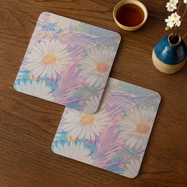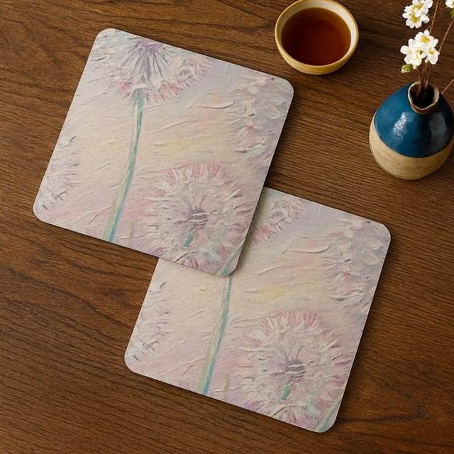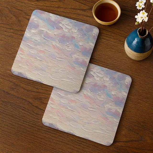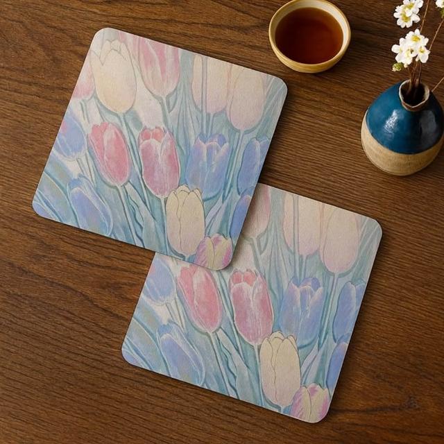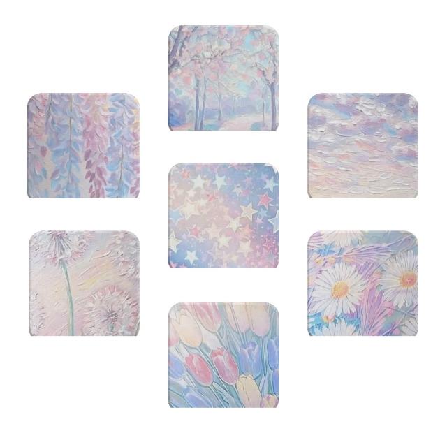 TRONTRON 方形軟式珪藻土杯墊 療癒系油畫 吸水杯墊 速乾杯墊 防潮杯墊