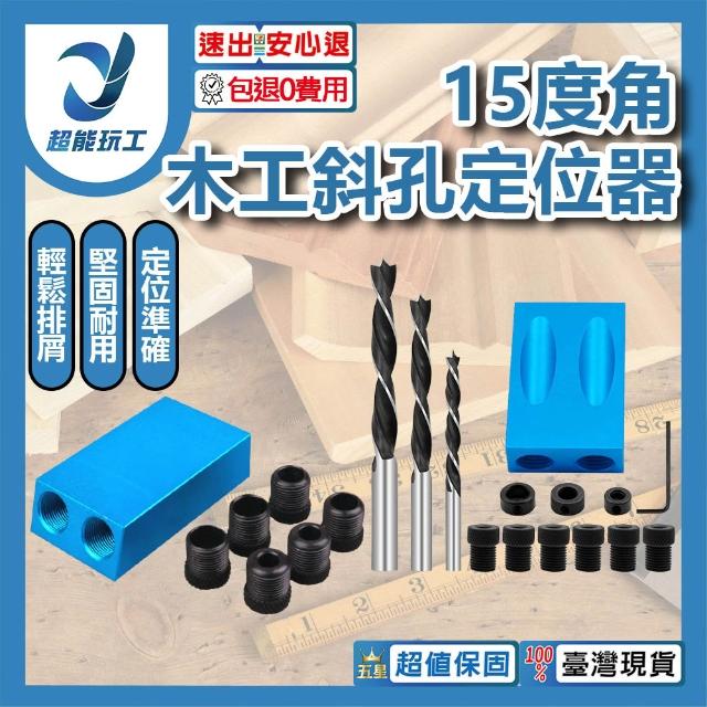 15度角木工斜孔定位器 木工鑽孔定位器 鋁合金木工打孔器 孔定位器定位鑽三尖鑽 打孔工具 超能玩工 包退0費用