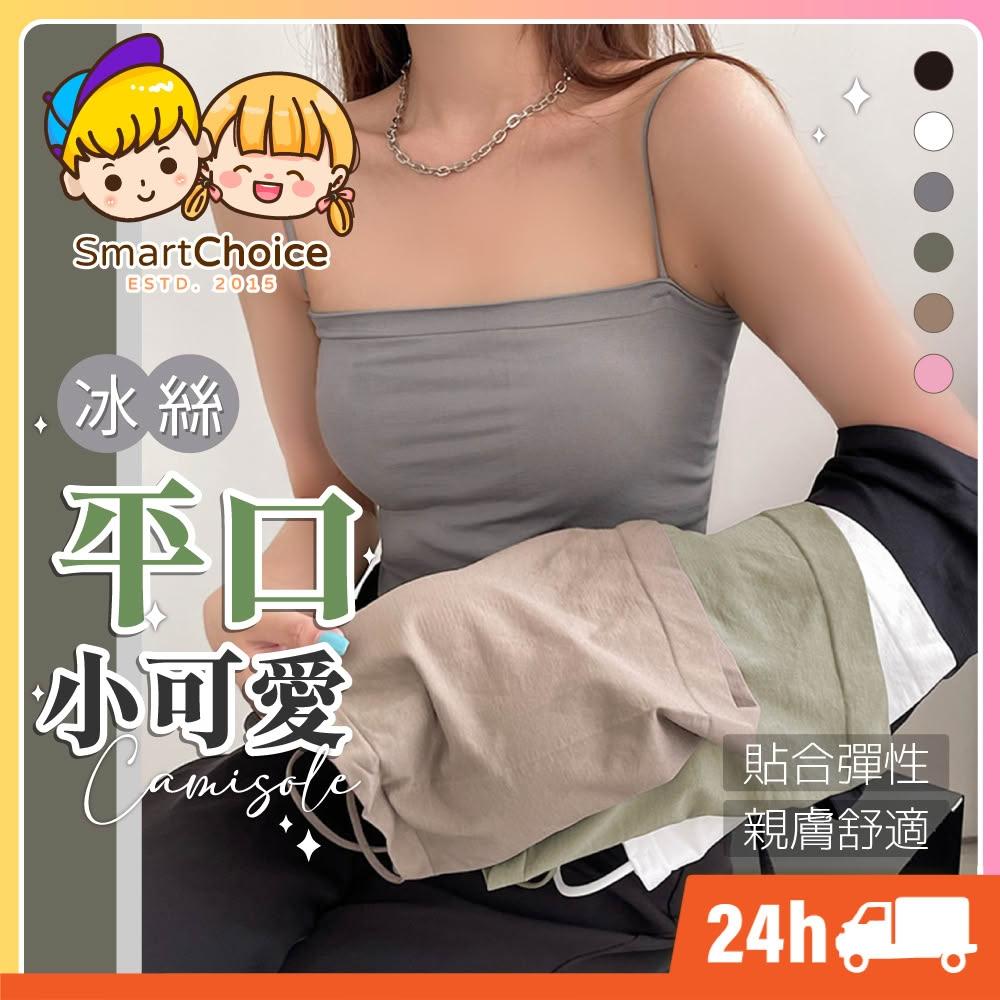 涼感平口小可愛 台灣現貨 隔日到貨 短版小可愛 韓版 細肩帶 乳膠胸墊 無袖上衣 平口背心 素色 內搭帶胸墊 小背心