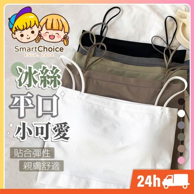 涼感無痕小可愛 台灣現貨 隔日到貨 細肩帶 短版小可愛 乳膠胸墊 平口背心 無袖上衣 小背心 內搭帶胸墊 韓版素色