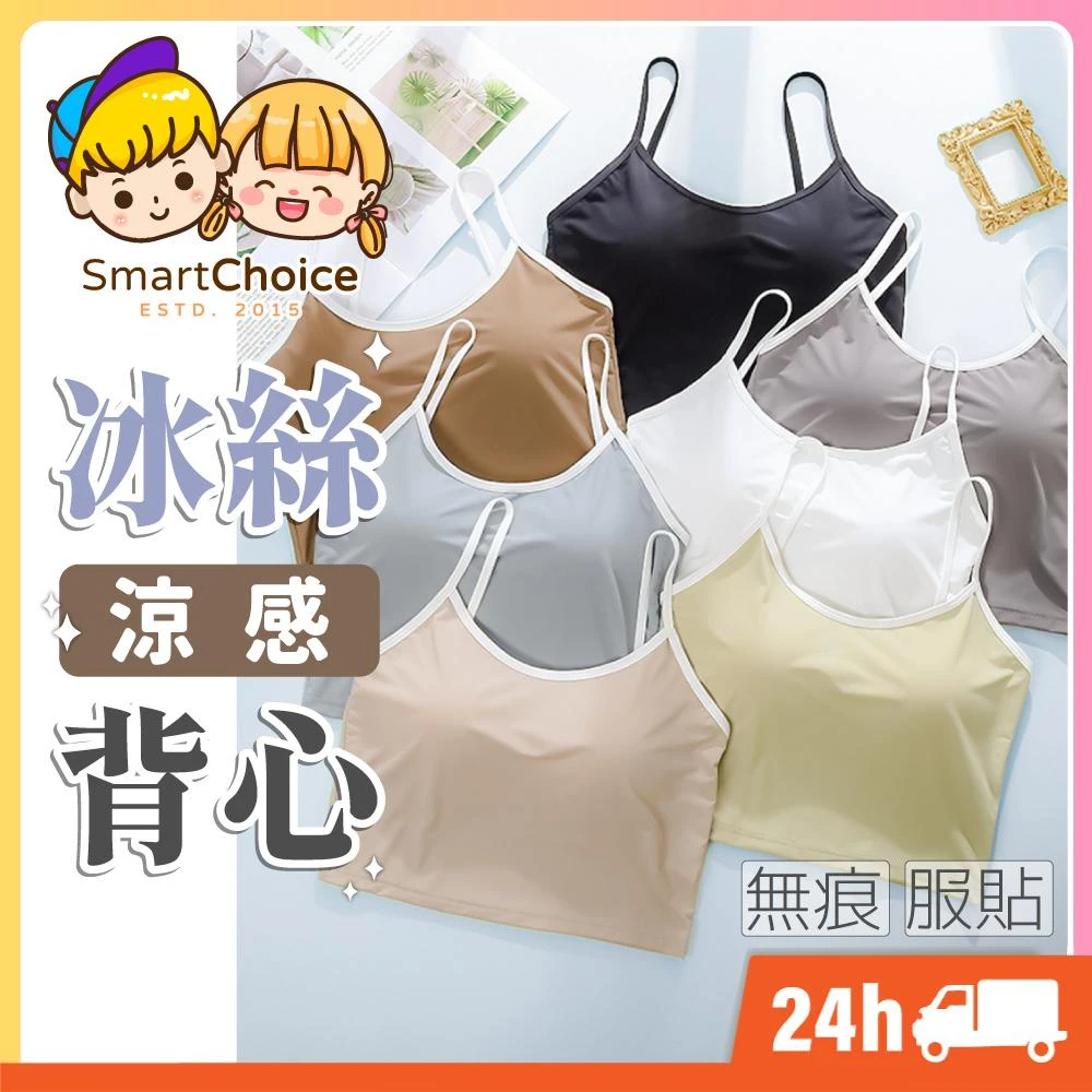 涼感吊帶背心 台灣現貨 隔日到貨 冰絲吊帶 帶胸墊背心 小可愛 細肩帶 冰絲背心 免穿內衣 女裝 韓版無痕 運動背心
