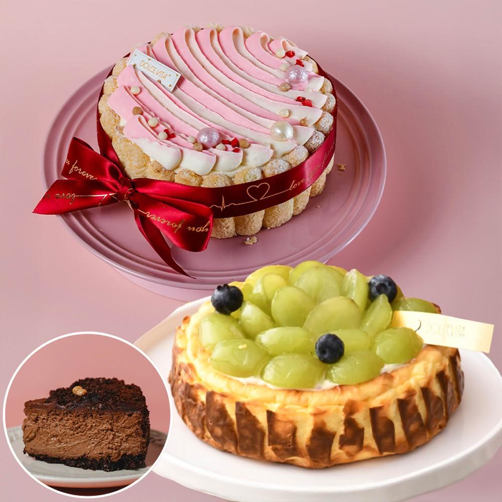 DolceVita 多茄米拉創意甜點免運/優惠套組/綠葡萄巴斯克(六吋)+粉紅泡泡(六吋)+巧克力重乳酪切片/贈送品牌提袋一只