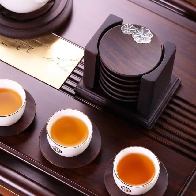 放茶杯的墊子 黑檀實木功夫茶杯墊 隔熱墊 杯托 杯架 茶具配件 茶道 家用