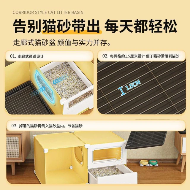 貓砂盆 全封閉 隔臭 超大號 走廊式 防外濺 抽屜式 貓咪專用廁所 隔臭屎盆