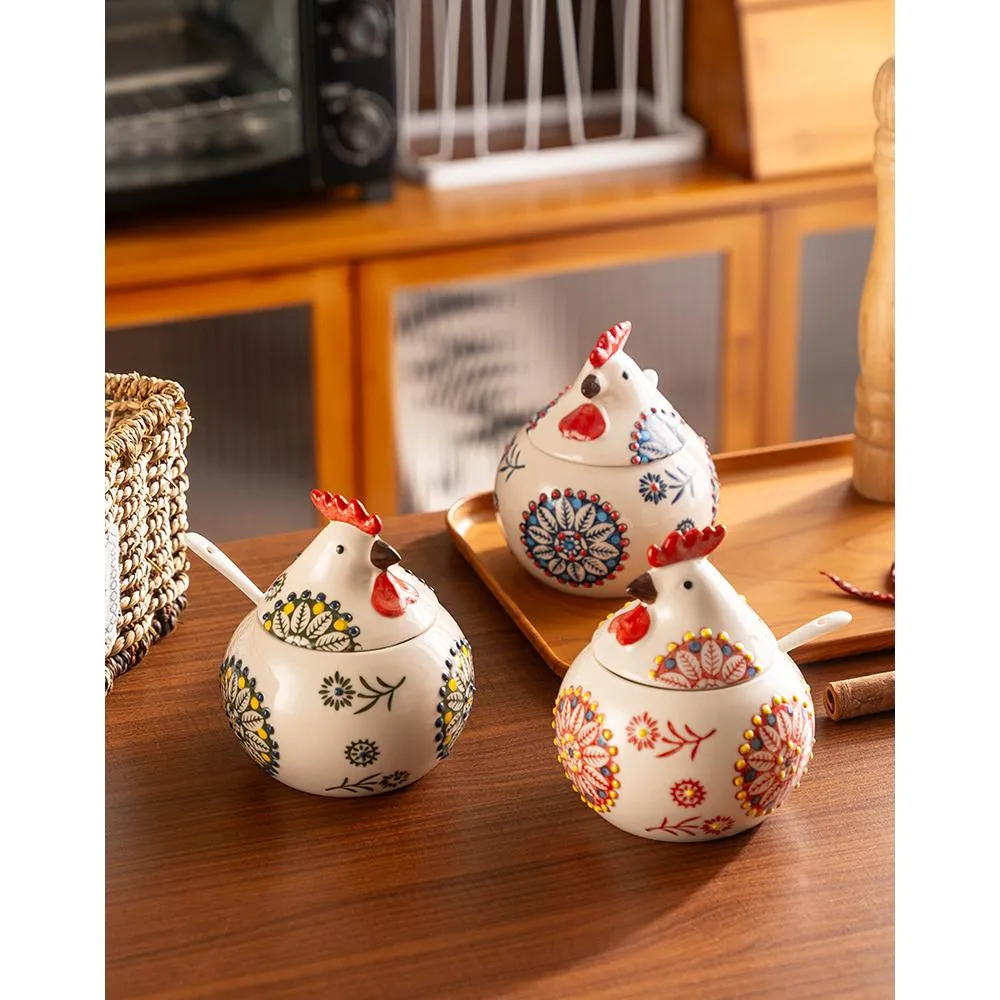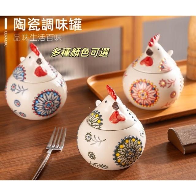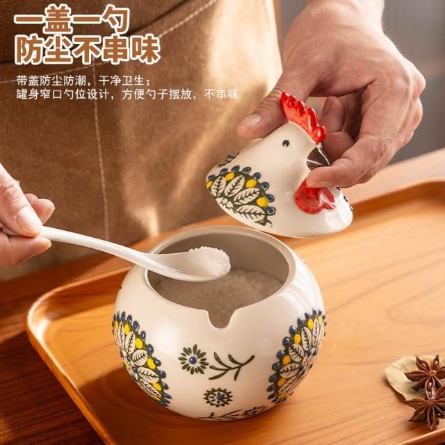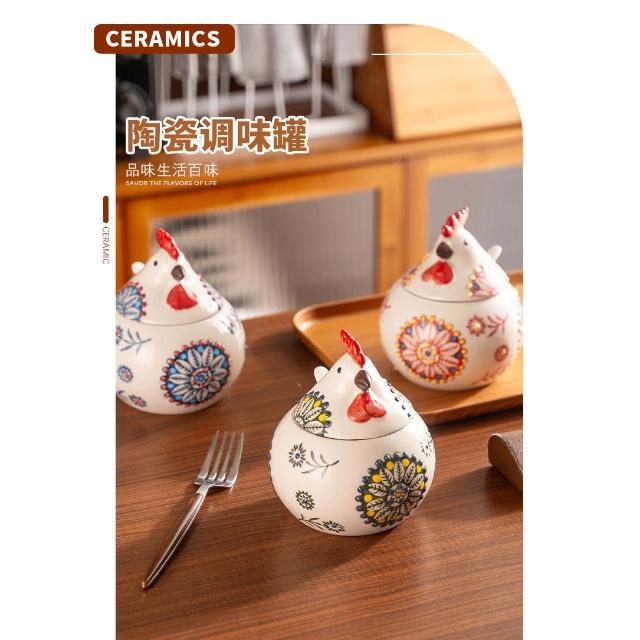 可愛簡約小雞調料罐 創意家用陶瓷帶蓋帶勺釉下彩手繪調味罐 防潮防塵防霉防蟲