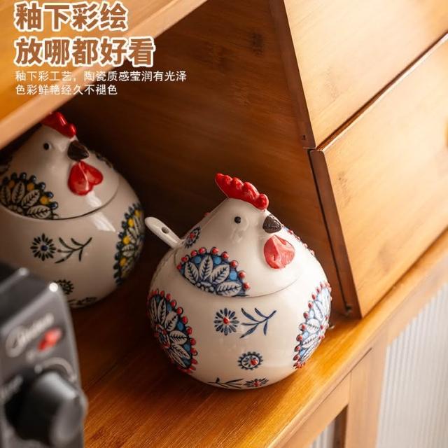 可愛簡約小雞調料罐 創意家用陶瓷帶蓋帶勺釉下彩手繪調味罐 防潮防塵防霉防蟲