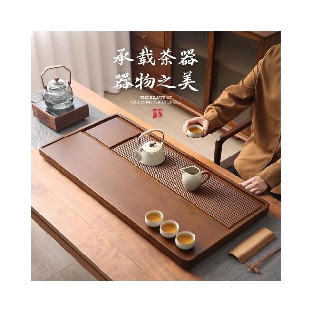 實木茶盤 家用整塊長方形茶盤 簡約辦公室幹泡茶臺 功夫款帶排水