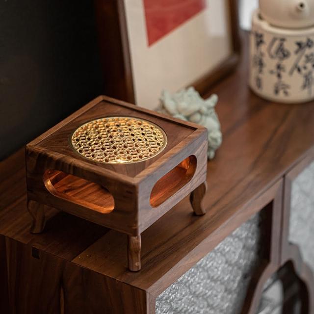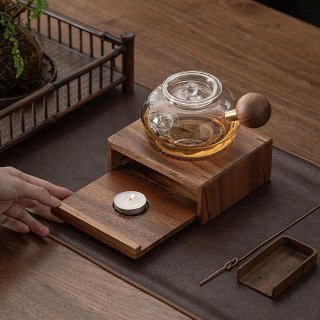 黑胡桃木溫茶爐 花茶壺 蠟燭加熱烤茶爐 家用酒店保溫煮茶器 暖茶爐子