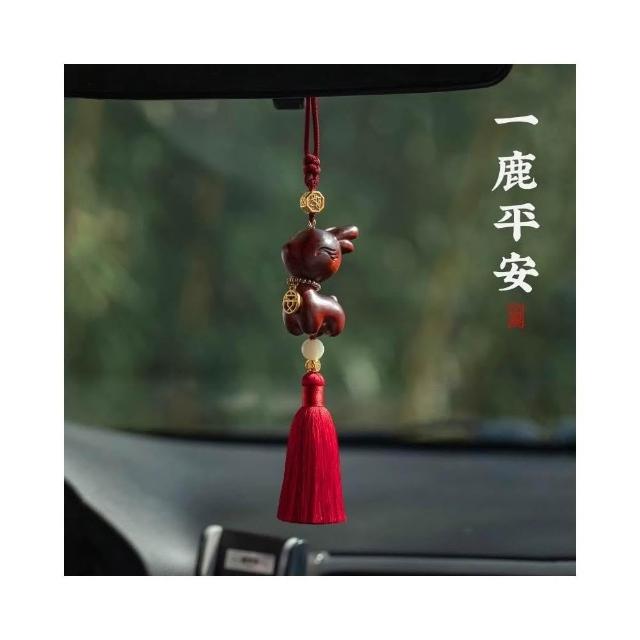 檀木壹鹿平安汽車掛件 高級感車載車掛 新創意車內吊飾 吊墜 高檔大氣