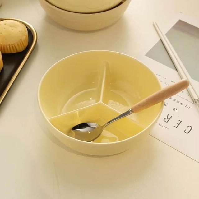 日式陶瓷飯碗 食堂打飯專用分隔飯盒 上班族瓷碗 可微波爐加熱分格碗 減肥分餐餐盤