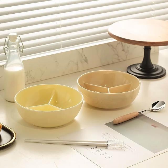 日式陶瓷飯碗 食堂打飯專用分隔飯盒 上班族瓷碗 可微波爐加熱分格碗 減肥分餐餐盤