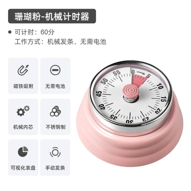 機械計時器 廚房做飯定時提醒器 可視化時間管理鬧鐘 倒計時磁吸鬧鐘