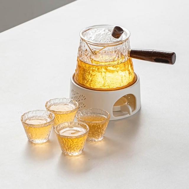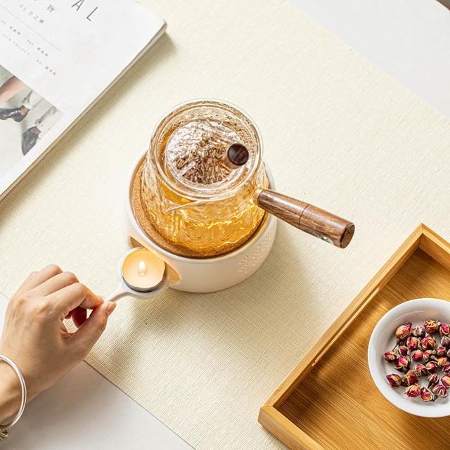 日式玻璃花茶杯具 花茶壺套裝 煮水果下午茶具 餐廳 蠟燭加熱溫茶爐