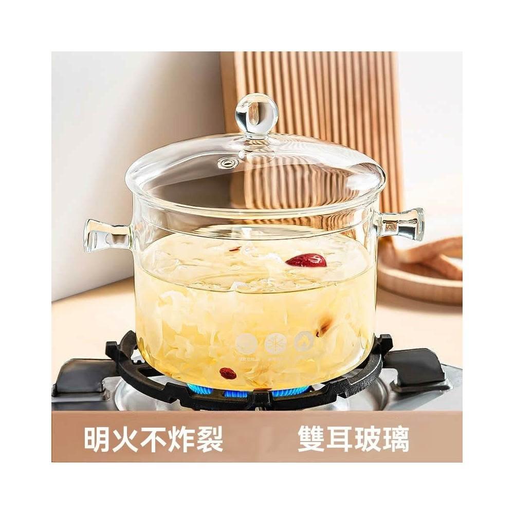 雙耳透明玻璃鍋 高硼硅可明火湯鍋 耐熱煲湯鍋 加厚家用帶蓋泡麵鍋 煮麵鍋 家用小火鍋 湯鍋