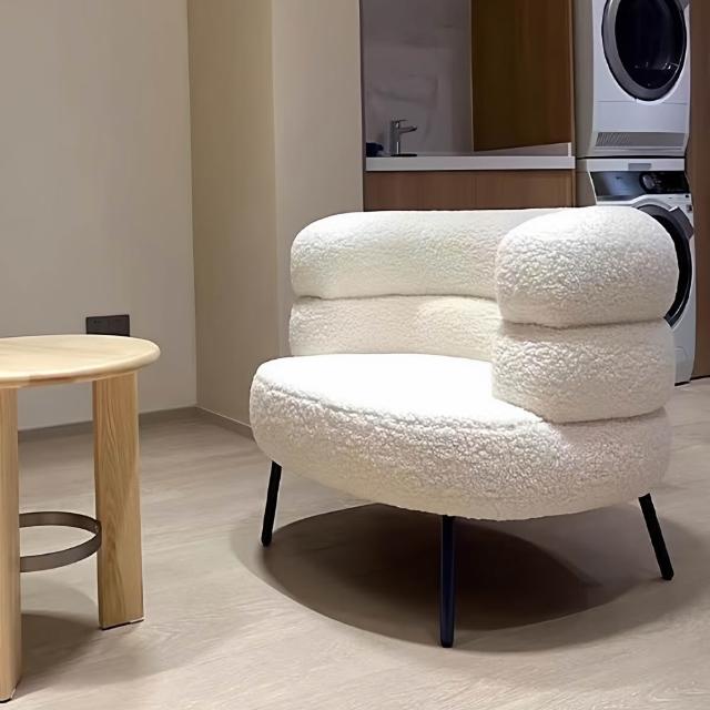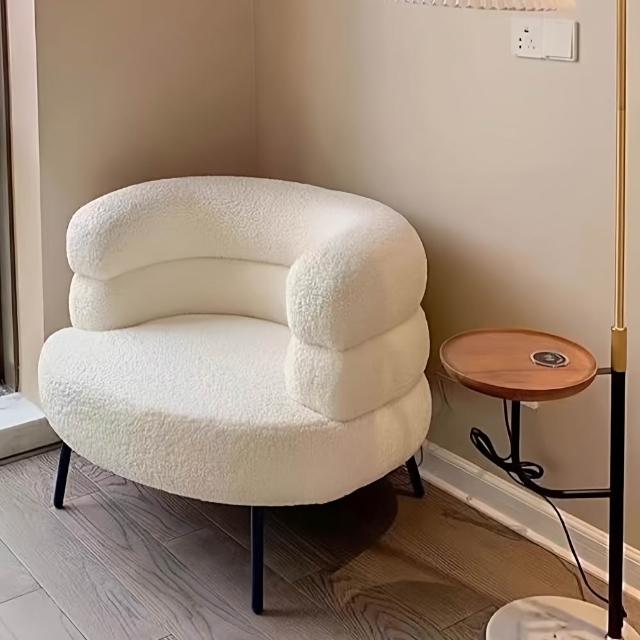 單人沙發椅 羊羔絨懶人椅 臥室梳妝臺化妝椅 奶油風休閒椅 單人椅 看書椅