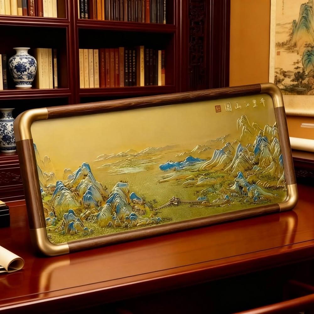千里江山圖送禮禮品 銅雕擺件 畫辦公室客廳書房桌面擺台