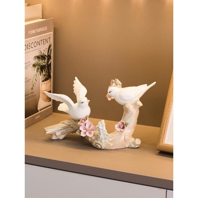 現代簡約陶瓷小鳥擺件 喜鵲梅花 家居客廳酒櫃軟裝飾品 歐式房間桌面玄關擺件