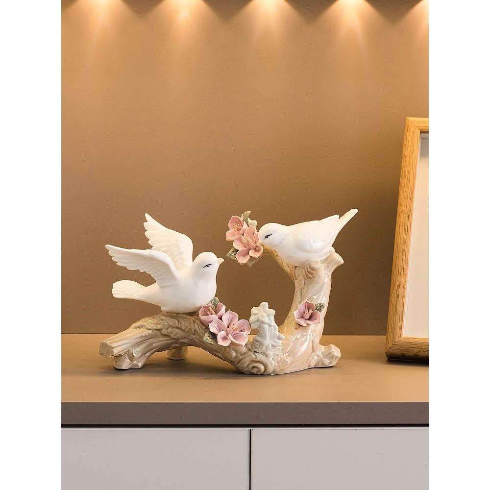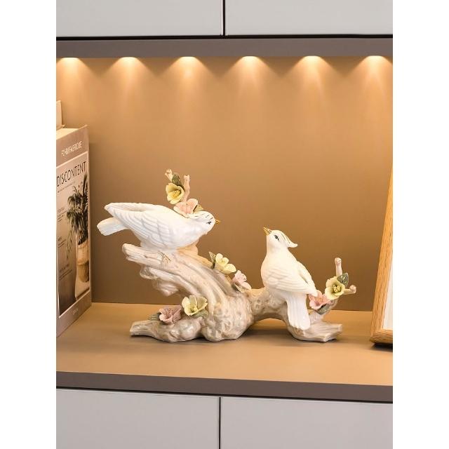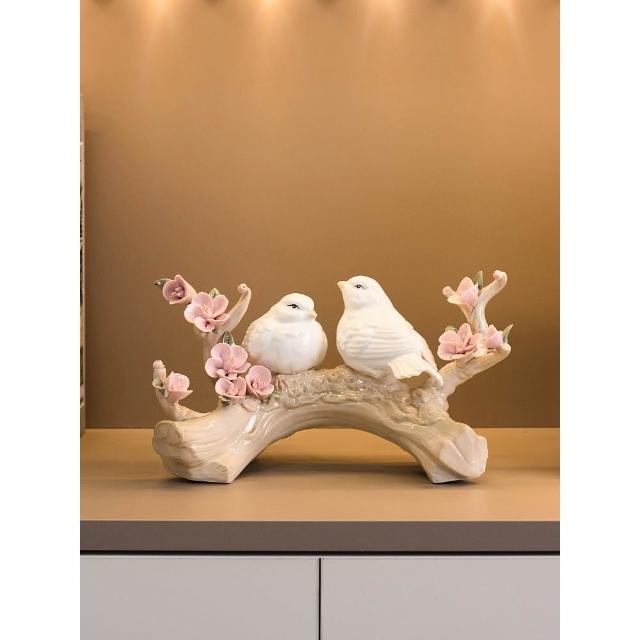 現代簡約陶瓷小鳥擺件 喜鵲梅花 家居客廳酒櫃軟裝飾品 歐式房間桌面玄關擺件