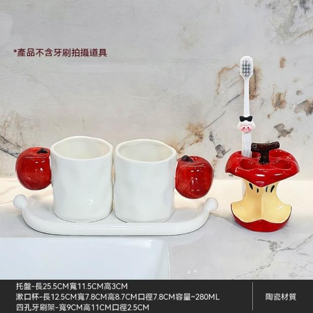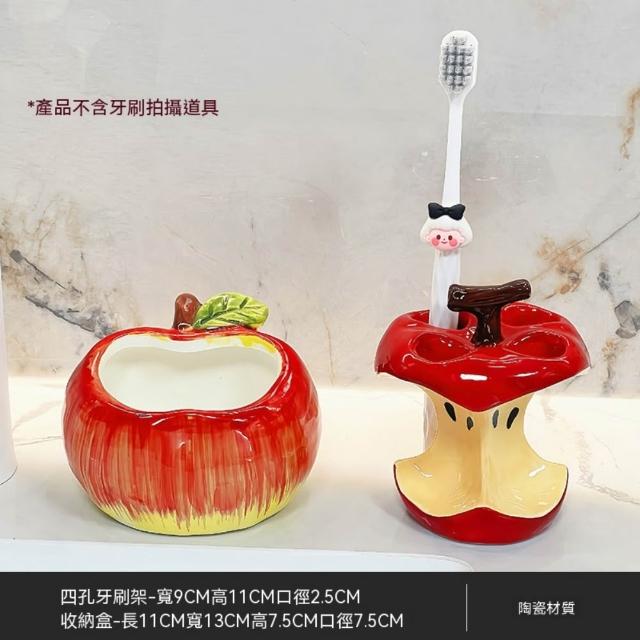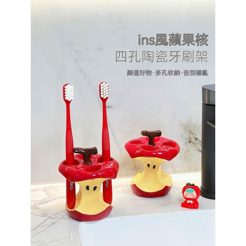 蘋果核牙刷架 家用衛生間洗漱收納 蘋果造型牙刷置物架組合 陶瓷收納底座支架