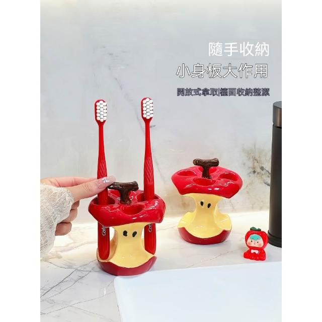 蘋果核牙刷架 家用衛生間洗漱收納 蘋果造型牙刷置物架組合 陶瓷收納底座支架