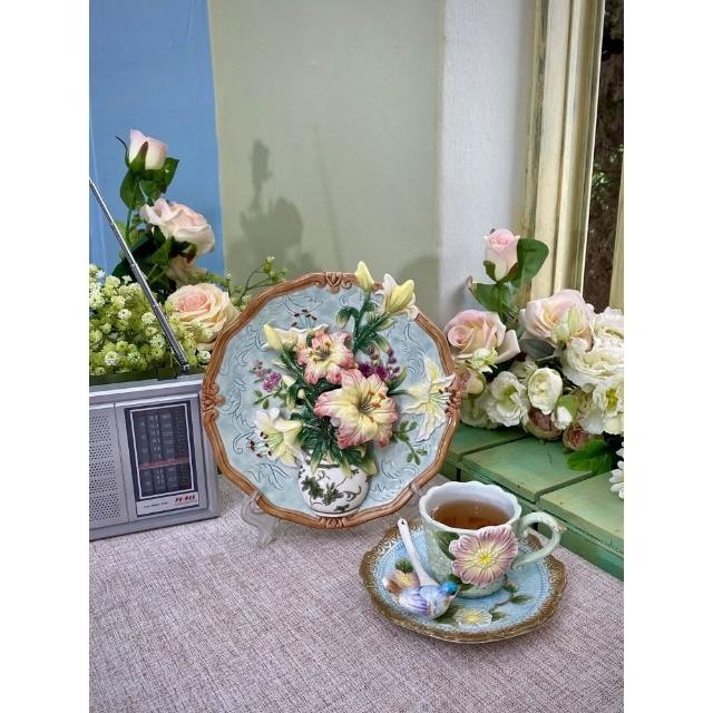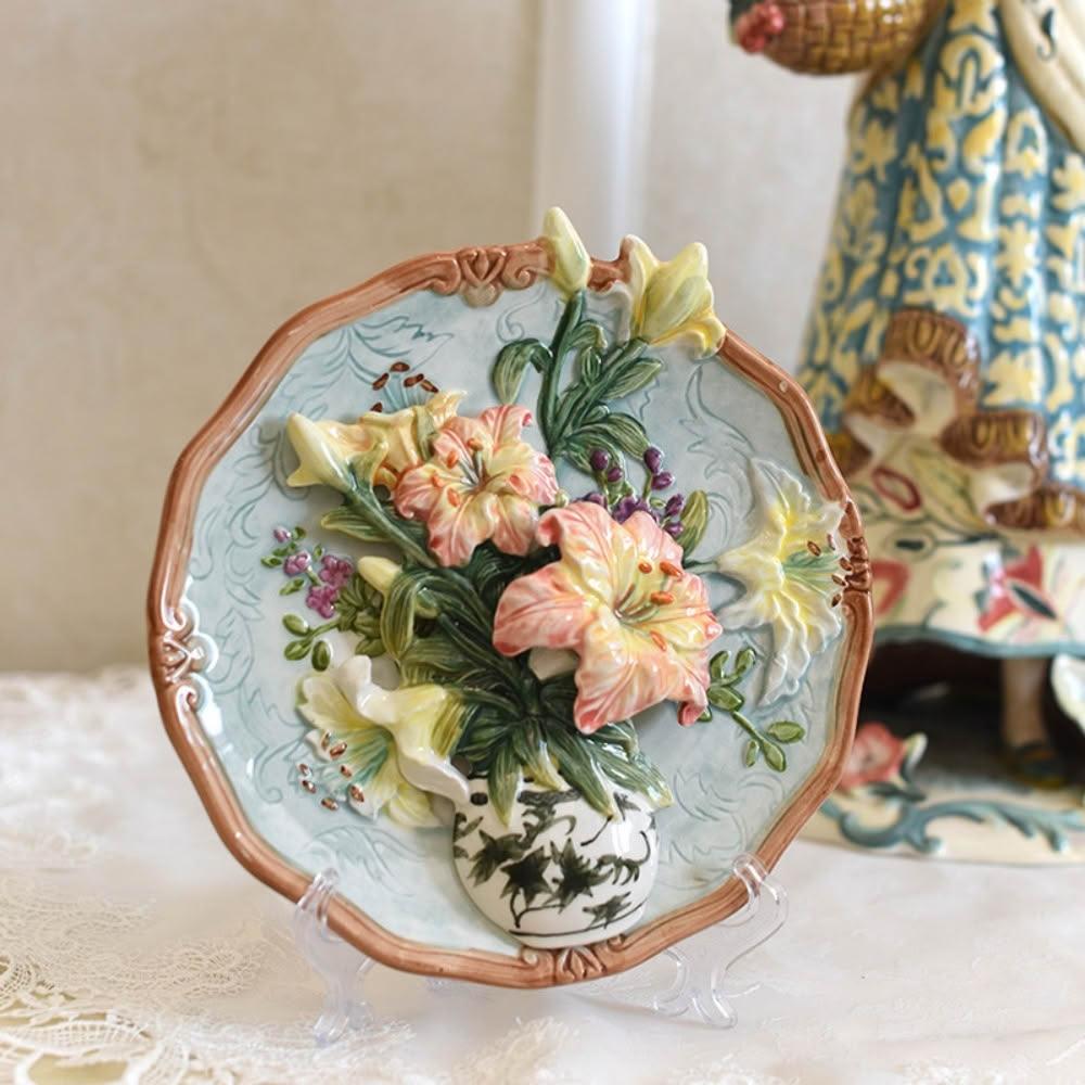 百合花陶瓷掛盤裝飾盤 電視櫃玄關擺飾 新房裝飾品 家居飾品