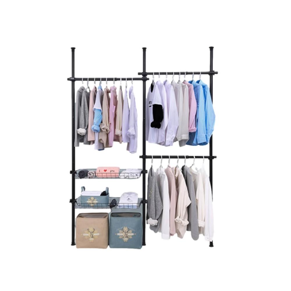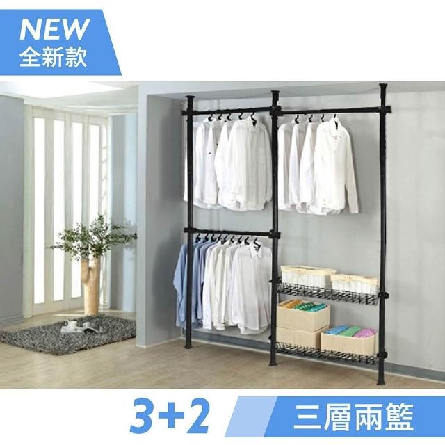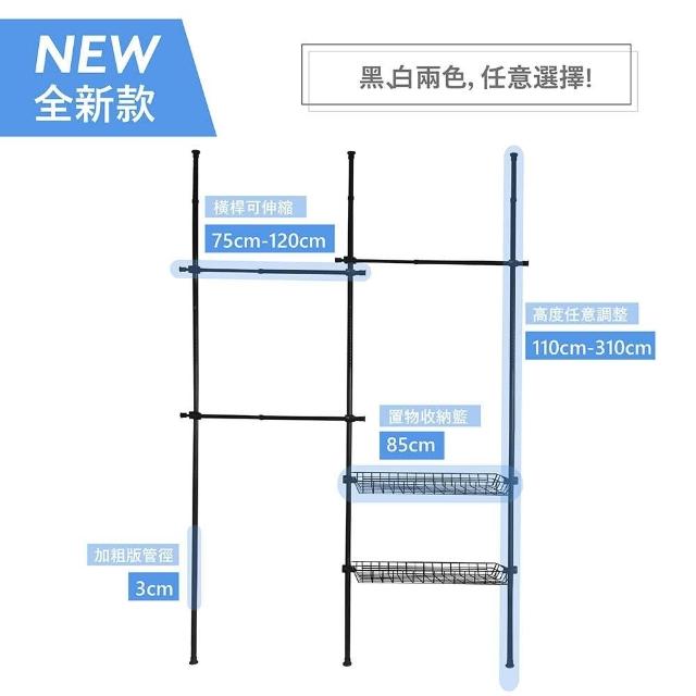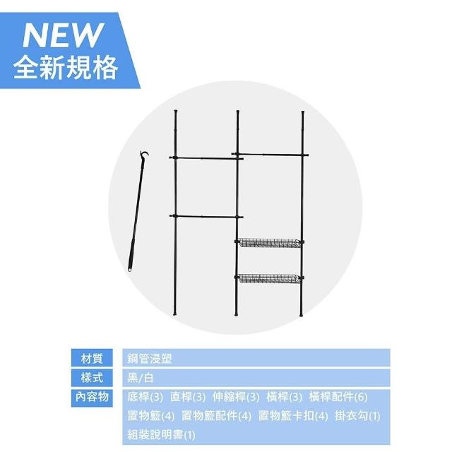 頂天立地曬衣架 頂天立地層架 頂天立地掛衣架 粗管徑頂天立地衣架贈掛衣鉤 簡易掛衣架 三層二籃 曬衣架 置物架 組合衣架