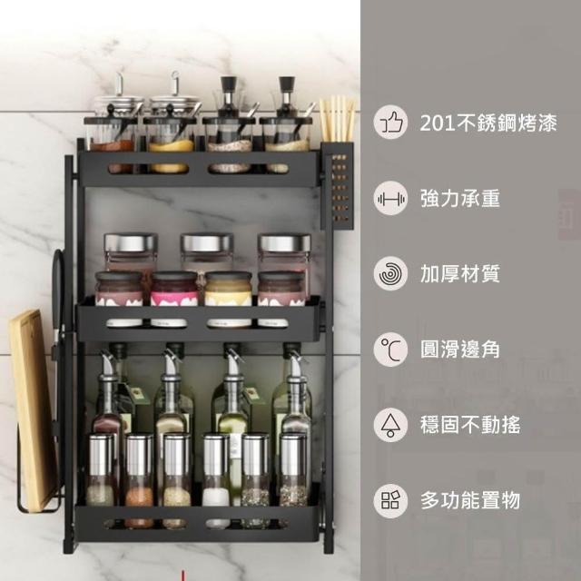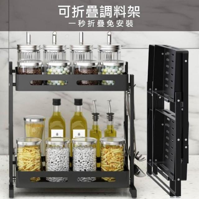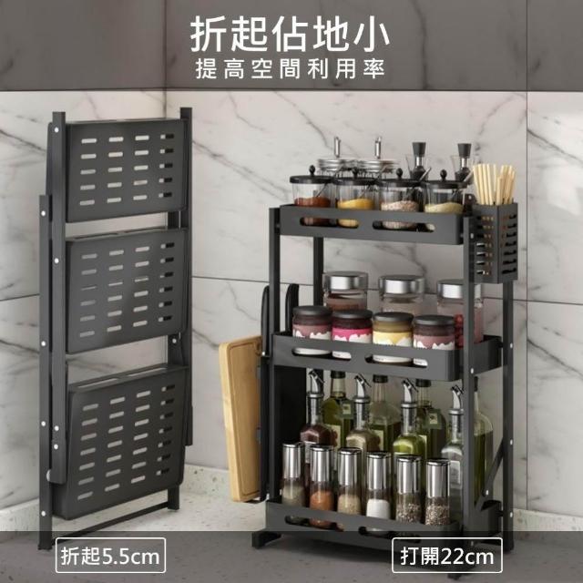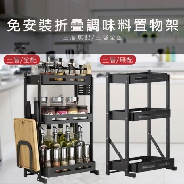 廚房調味料置物架 免安裝調味料置物架 廚房調味料收納架 桌上收納架不鏽鋼三層調味料置物架 免安裝調味料架 可折疊調味料架