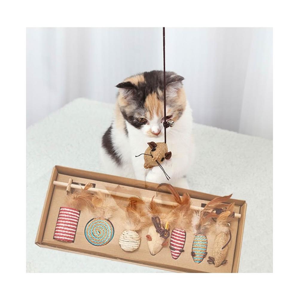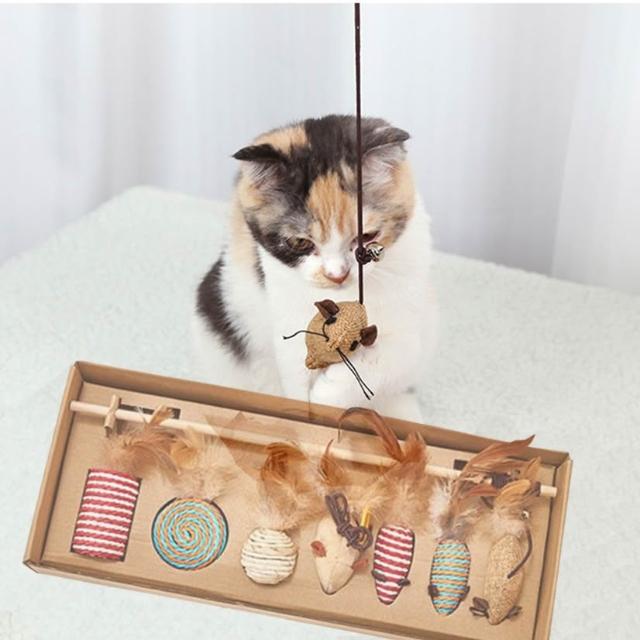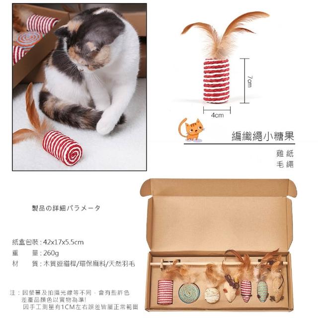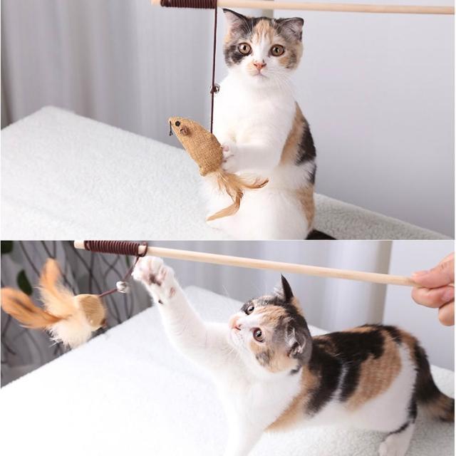 逗貓棒七件組木質逗貓桿 天然羽毛 逗貓 貓紓壓 貓玩具 喵星人 貓咪紓壓 貓磨爪 逗貓棒