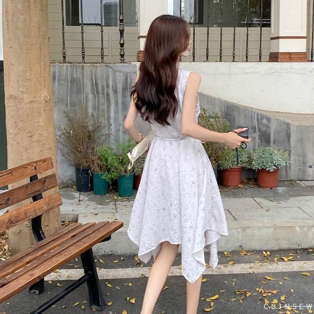 CUTNSEW 63452 現貨 小碎花無袖襯衫洋裝 (女裝 春夏 寬鬆 碎花 洋裝 無袖 連身裙 不規則裙襬)