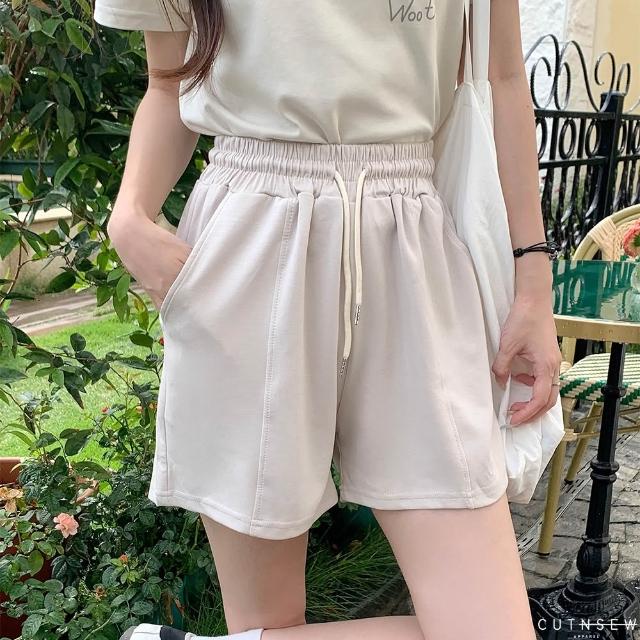 UTNSEW 【64936現貨 簡約空氣層抽繩短褲 (女裝 高腰 寬鬆 短褲 休閒褲 顯瘦 春夏)