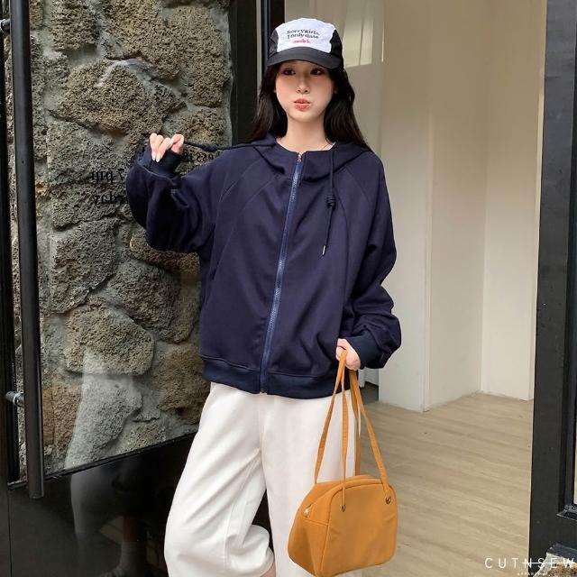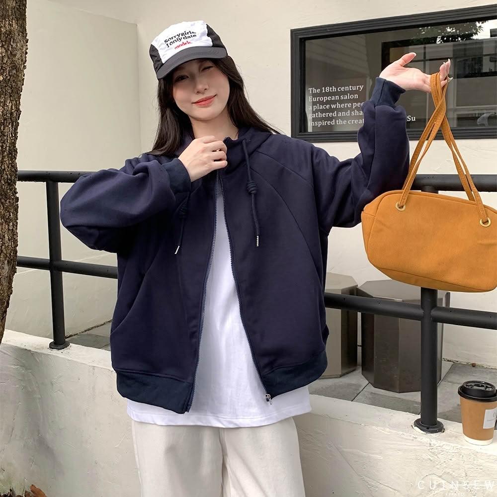 UTNSEW 【70902現貨 簡約連帽外套 素色 長袖 運動外套 拉鍊外套 基本款 四色 休閒外套 秋冬 外套女