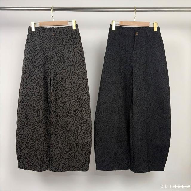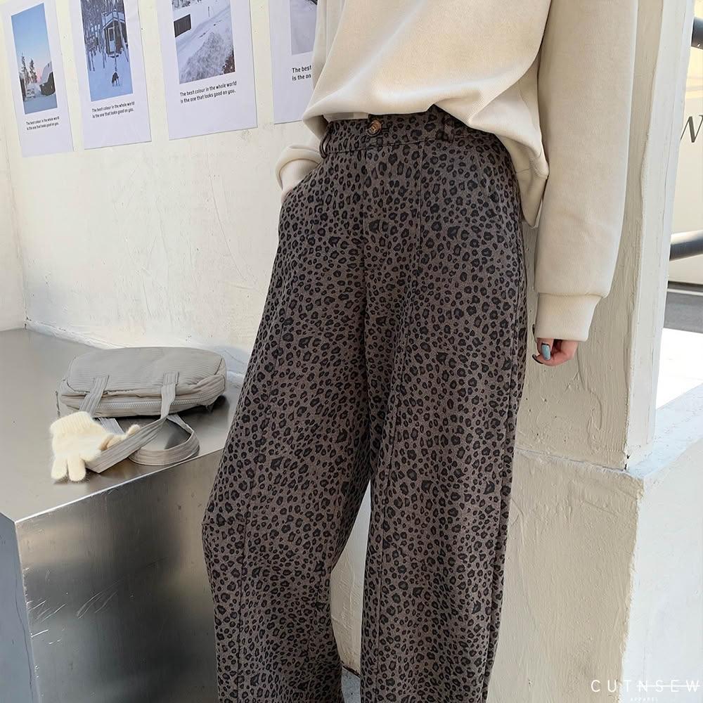 CUTNSEW【71923】現貨 滿版豹紋刷毛休閒褲 錐型褲 繭型褲 彎刀褲 顯瘦修身 秋冬 厚磅磨毛 韓系 熱銷款